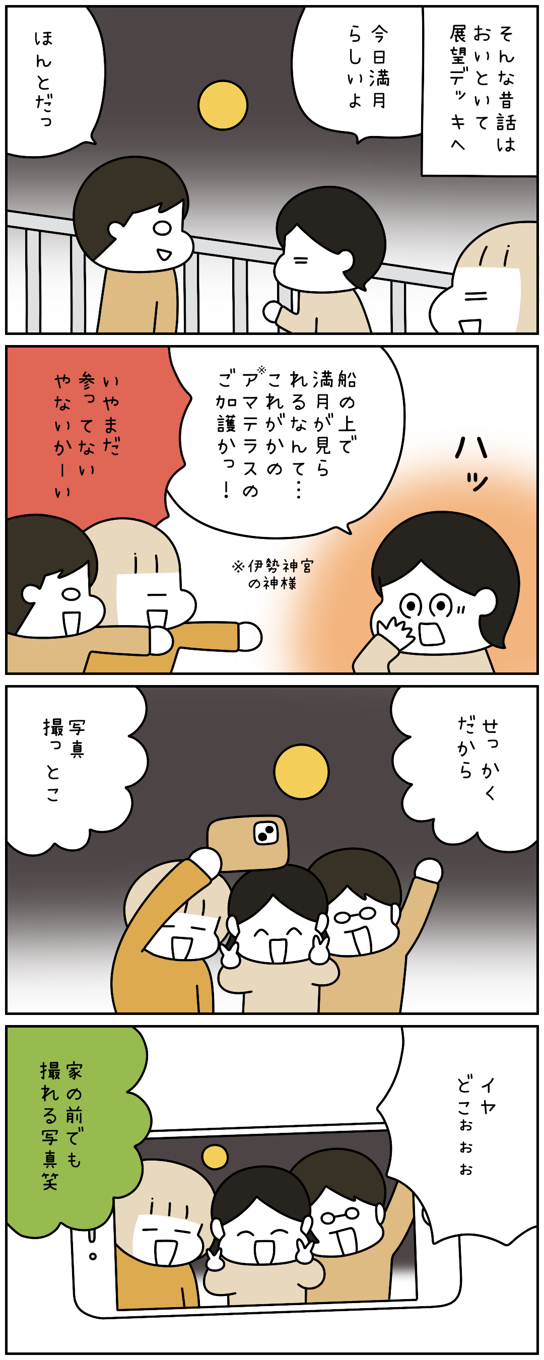 2025年10月19日 思い立って伊勢参り⑧ 綺麗な満月でした🌕どこか分からない写真もいい思い出です笑次の話 1話から読む タグ :#エッセイ#コミックエッセイ#絵日記#漫画が読めるハッシュタグ#旅レポ 「お出かけ」カテゴリの最新記事 < 前の記事次の記事 > コメント コメントフォーム 名前 コメント 記事の評価 リセット リセット 顔 星 情報を記憶 コメントを投稿する