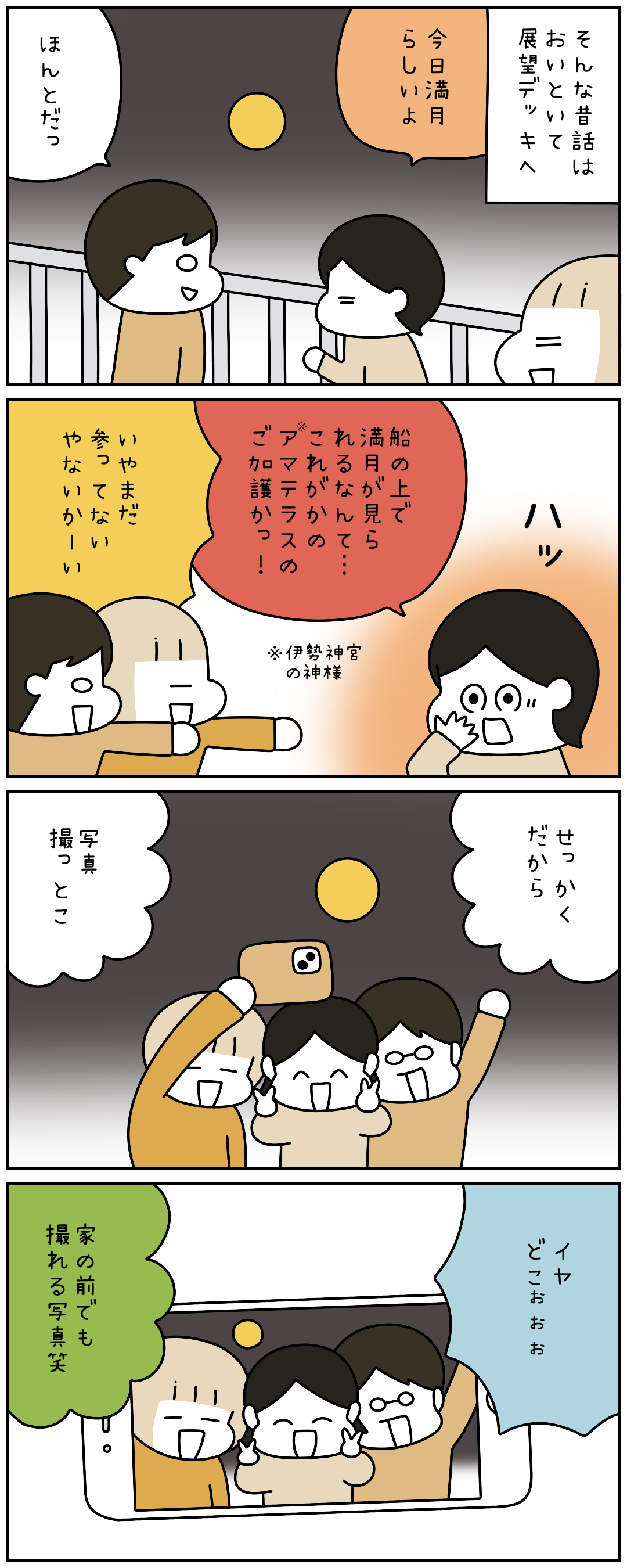 2025年10月19日 思い立って伊勢参り⑧ 綺麗な満月でした🌕どこか分からない写真もいい思い出です笑次の話⤵️ 1話から読む⤵️ タグ :#エッセイ#コミックエッセイ#絵日記#漫画が読めるハッシュタグ#さんふらわ#伊勢神宮#旅レポ 「お出かけ」カテゴリの最新記事 < 前の記事次の記事 > コメント コメントフォーム 名前 コメント 記事の評価 リセット リセット 顔 星 情報を記憶 コメントを投稿する