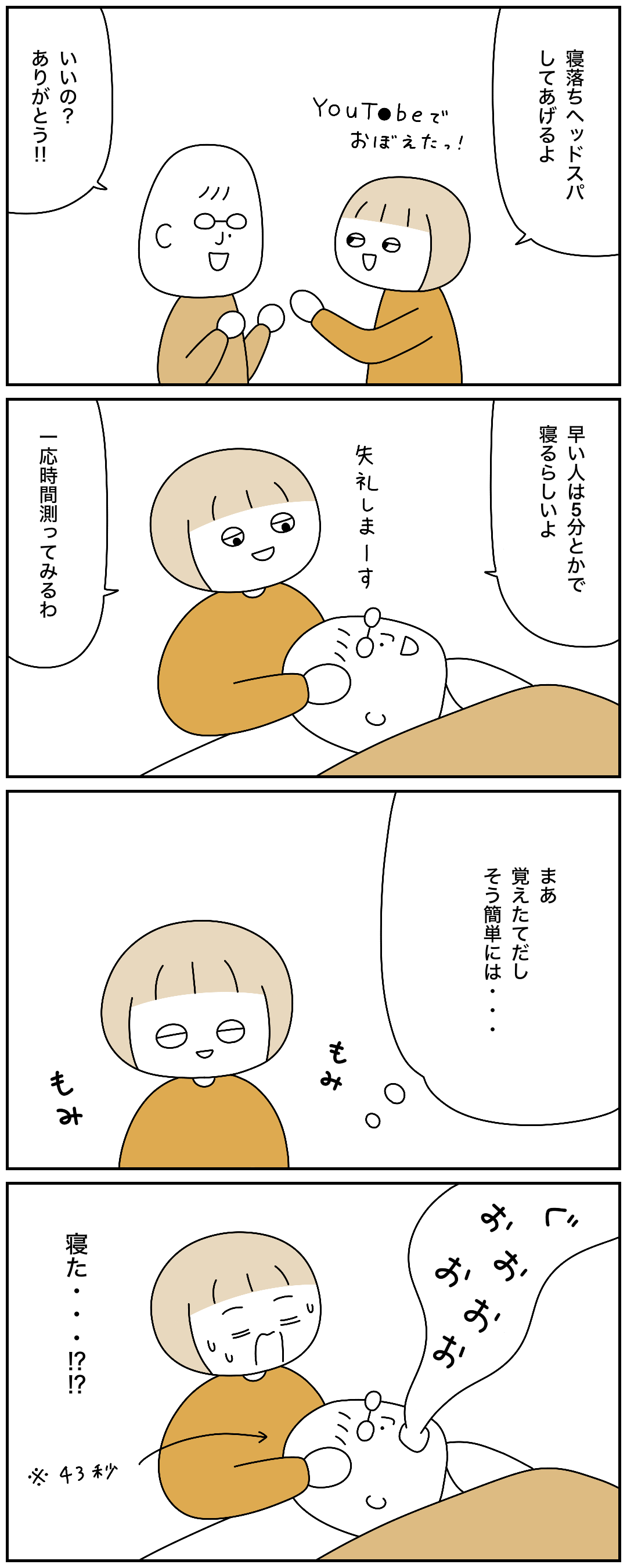 2024年10月10日 ヘッドスパ最弱王 弱すぎですよね笑疲れてたのかなあ。母にもやってみたのですが、4分くらいで寝ました。参考動画⤵️ タグ :#エッセイ#コミックエッセイ#漫画が読めるハッシュタグ#絵日記#日常漫画 「ももの家」カテゴリの最新記事 < 前の記事次の記事 > コメント コメントフォーム 名前 コメント 記事の評価 リセット リセット 顔 星 情報を記憶 コメントを投稿する