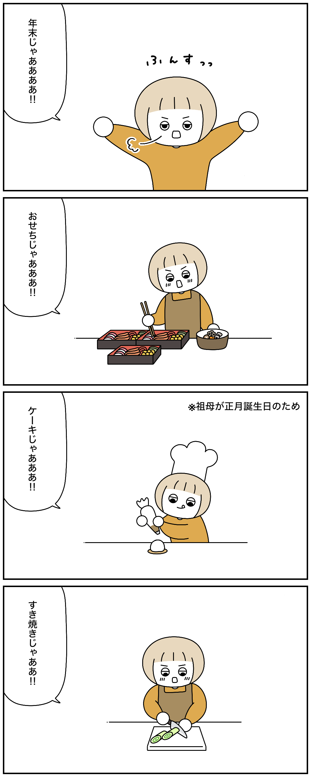 2024年12月31日 どたばた年末、無事終了 なんとか全部作れました。おせちとケーキは、明日祖母の家で食べる予定です。すき焼きは今日食べたのですが、めちゃくちゃ美味しかったです。毎年この時期に叔母がいいお肉をくれるので、年末すき焼きが恒例化しています。本当にありがたい限りです🥹品数が多くて大変でしたが、無事全部作れて良かったです。また来年も作れたらいいなあ。なにはともあれ、お陰様で今年もいい年になりました!来年もよろしくお願いします。みなさん良いお年を! タグ :#エッセイ#コミックエッセイ#漫画が読めるハッシュタグ#絵日記#日常漫画 「料理」カテゴリの最新記事 < 前の記事次の記事 > コメント コメントフォーム 名前 コメント 記事の評価 リセット リセット 顔 星 情報を記憶 コメントを投稿する