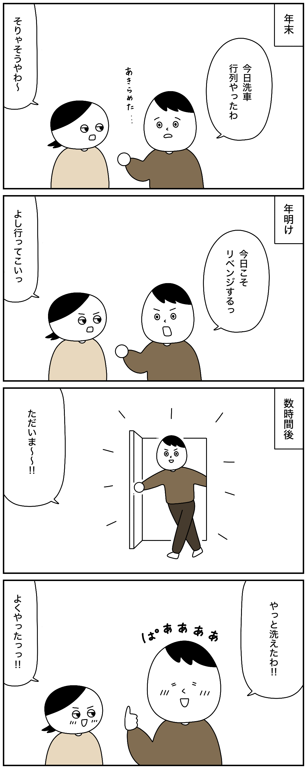 2025年01月03日 洗車難民弟と応援隊母 やっぱり年末は洗車並びますよね。無事洗車できて良かったです。おすすめ回 タグ :#エッセイ#コミックエッセイ#漫画が読めるハッシュタグ#絵日記 「ももの家」カテゴリの最新記事 < 前の記事次の記事 > コメント コメントフォーム 名前 コメント 記事の評価 リセット リセット 顔 星 情報を記憶 コメントを投稿する