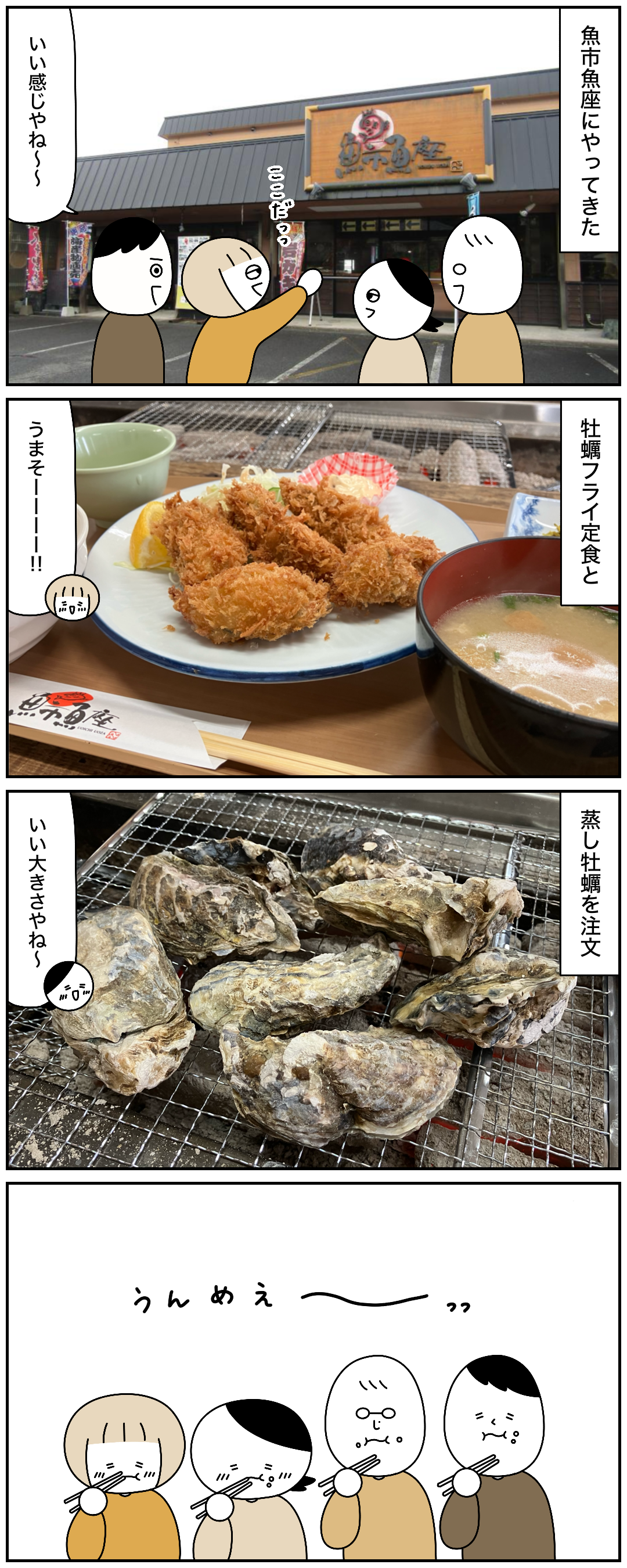 2025年01月05日 【杵築】新年牡蠣パーティー 身がぷりっとしててとても美味しかったです!牡蠣は産卵を終えた11月頃から美味しくなり始めるとのこと。1番美味しくなるのは産卵の準備に入る3〜4月頃なんだとか。杵築に行ったらぜひ!公式ホームページ タグ :#エッセイ#コミックエッセイ#漫画が読めるハッシュタグ#絵日記 「お出かけ」カテゴリの最新記事 < 前の記事次の記事 > コメント コメントフォーム 名前 コメント 記事の評価 リセット リセット 顔 星 情報を記憶 コメントを投稿する