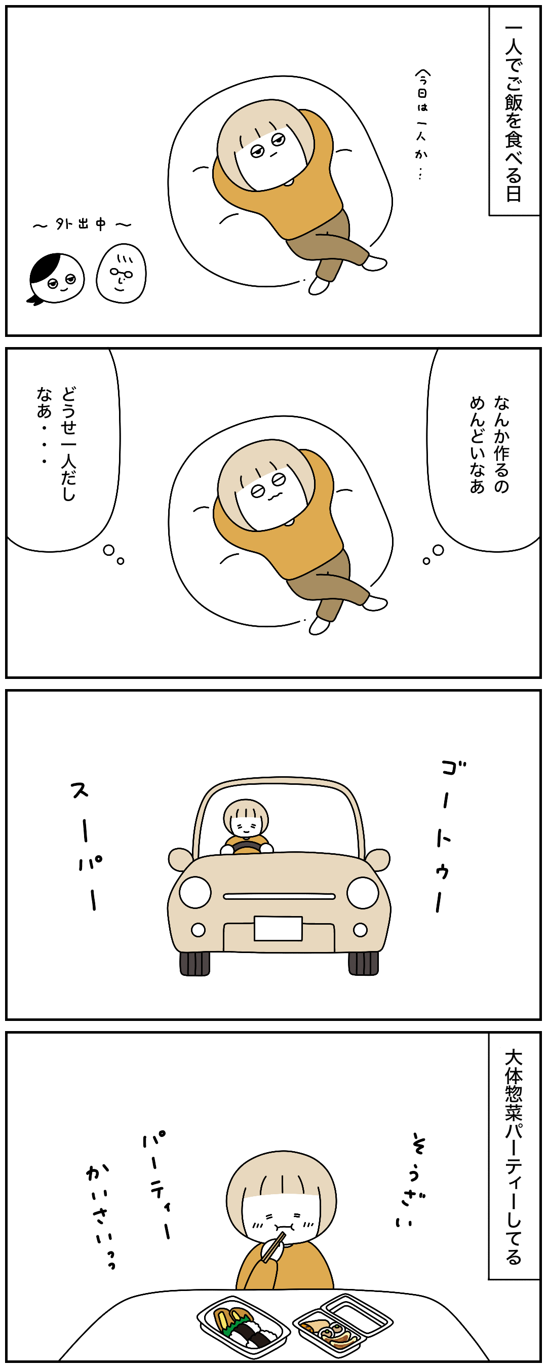 2025年01月22日 1人の時って料理する気起きんよね なるべく自炊を心掛けていますが、1人の時はさぼりがちです。まあ、たまにならいいか笑おすすめ回 タグ :#エッセイ#コミックエッセイ#絵日記#漫画が読めるハッシュタグ 「料理」カテゴリの最新記事 < 前の記事次の記事 > コメント コメントフォーム 名前 コメント 記事の評価 リセット リセット 顔 星 情報を記憶 コメントを投稿する